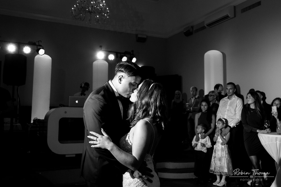 En toen was het eindelijk tijd voor het feest. Soms duurt het even tot het feest op gang komt, maar dat was bij het feest van Bianca en Gidion zeker niet het geval. Na de openings dans barstte het feest gelijk los en kon ik het bruidspaar nog heel even snel meenemen naar buiten voor een laatste gave foto in het donker.